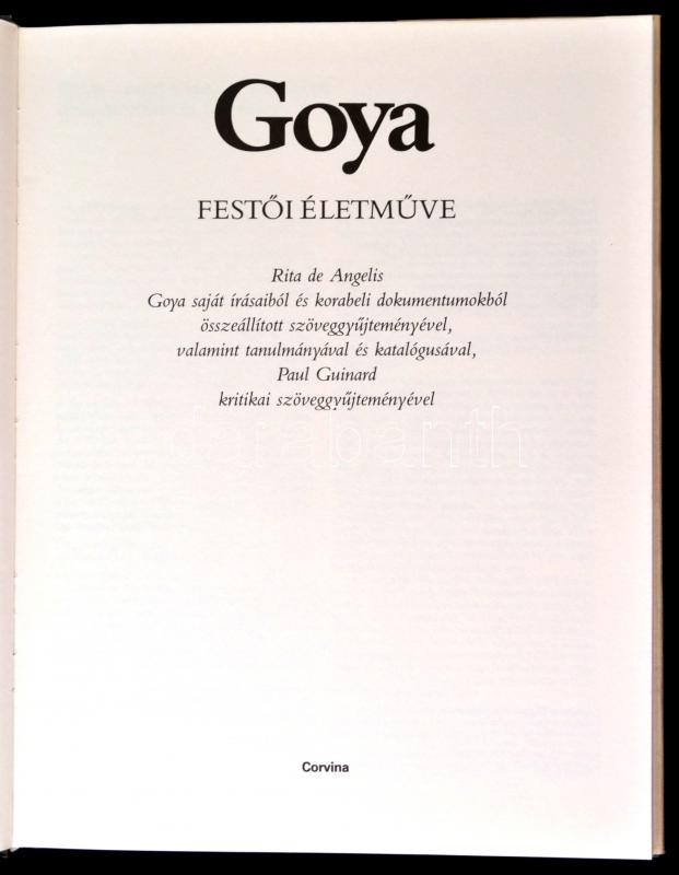 Rita de Angelis-Paul Guinard: Goya festői életműve. Fordította: Havas ... https://www.darabanth.com/hu/329-Gyorsarveres/329.0/Konyvek/Konyvek-Epiteszet-muveszet~1000006/Rita-de-Angelis-Paul-Guinard-Goya-festoi-eletmuve-Forditotta-Havas-Lujza-Szekacs-Vera-A-m~II1833288
