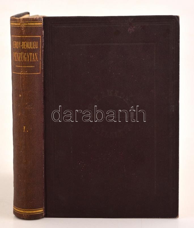 Leírás: Leroy-Beaulieu P.: Pénzügytan I. kötet. Fordította: Láng Lajos. Bp.,1879, MTA. Kiadói aranyozott egészvászon-kötés,Hirháger-kötés, márványozott lapélekkel, kissé fakó gerinccel, kissé foltos elülső szennylappal, előzéklappal és címlappal, névbejegyzéssel.