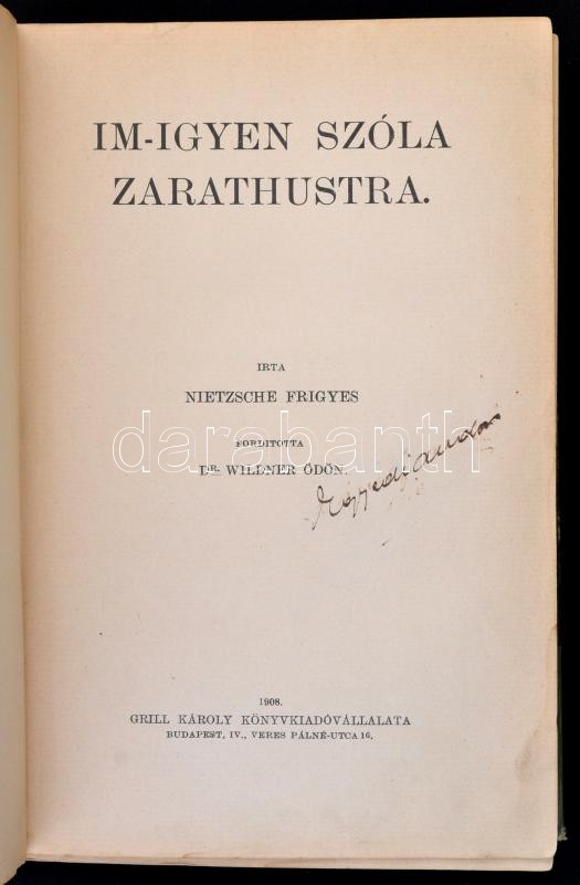 Nietzsche Frigyes: Im-igyen szóla Zarathustra. Bp., 1908, Grill. Kicsi... https://www.darabanth.com/hu/329-Gyorsarveres/329.0/Konyvek/Konyvek-Tarsadalomtudomany~1000010/Nietzsche-Frigyes-Im-igyen-szola-Zarathustra-Bp-1908-Grill-Kicsit-laza-reszben-javitott-s~II1641400