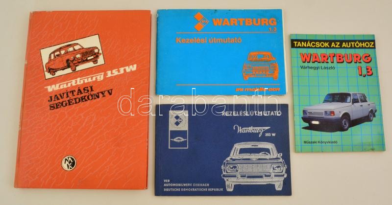 Leírás: 4 db Wartburg személygépkocsival kapcsolatos könyv