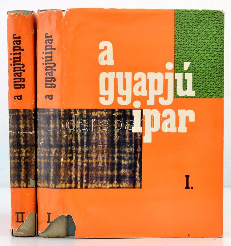 A gyapjúipar gyártási ismeretek I-II. kötet. Szerk.: Horváth László. Bp., 1963, Közgazdasági és Jogi Könyvkiadó. Kiadói egészvászon-kötés, kiadói kissé hiányos, kissé foltos papírkötés, kiadói foltos kartontokban. Megjelent 1100 példányban.