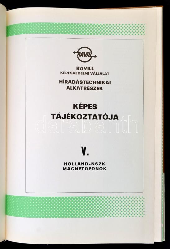 Híradástechnikai alkatrészek képes tájékoztatója. V. Holland-NSZK magnetofonok. Szerk.: Tollár Imréné. Bp.,(1974), Ravill Kereskedelmi Vállalat,(Franklin-ny.), 135 p. Kiadói kissé foltos kartonált papírkötés.