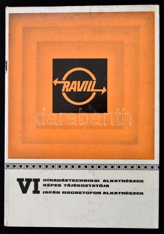 Híradástechnikai alkatrészek képes tájékoztatója. VI. Japán magnetofonok alkatrészek. Szerk.: Tollár Imréné. Bp.,(1976), Ravill Kereskedelmi Vállalat,(Franklin-ny.), 168 p. Kiadói kissé sérült gerincű kartonált papírkötés.