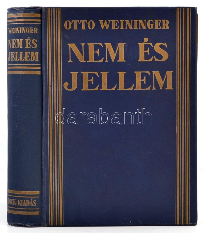 Otto Weininger: Nem és jellem. Elvi tanulmány. Fordította Gábor Andor. Bp.,é.n, Dick Manó. Kiadói aranyozott egész-vászonkötés, kis sérüléssel a gerincen, kis kopással a borítón, jó állapotban.