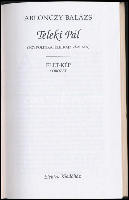Ablonczy Balázs: Teleki Pál. (Egy politikai életrajz vázlata.) Élet-ké... https://www.darabanth.com/hu/329-Gyorsarveres/329.0/Konyvek/Konyvek-Tortenelem~1000004/Ablonczy-Balazs-Teleki-Pal-Egy-politikai-eletrajz-vazlata-Elet-kep-sorozat-Bp-200-Elekt~II1819746