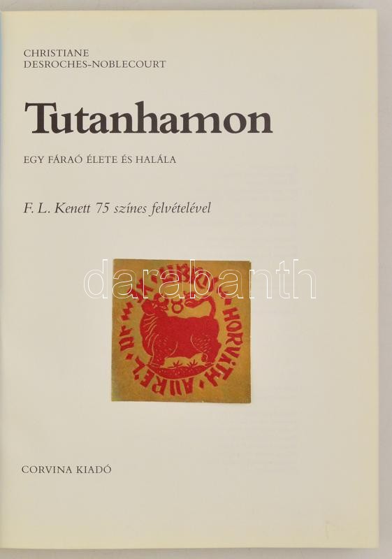 Christiane Desroches-Noblecourt: Tutanhamon. Egy fáraó élete és halála. Bp.,1985, Corvina. Kiadói egészvászon-kötés, kiadói papír védőborítóban. Ex Libris Dr. Horváth Aurél.