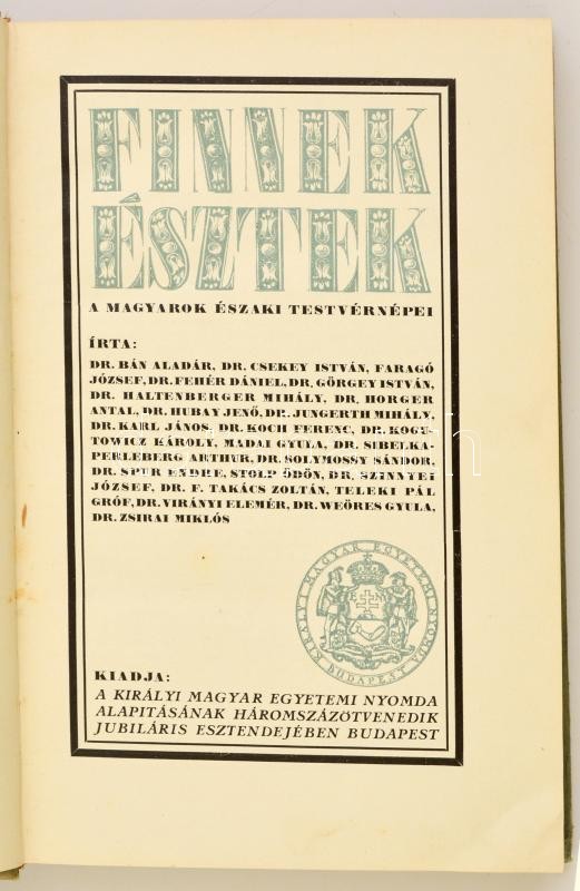 Finnek, észtek. A magyarok északi testvérnépei. Írták: Dr. Kogutovicz Károly, Dr. Szinnyei József, Teleki Pál, Dr. Zsirai Miklós és mások. Bp.,1928, M. Kir. Egyetemi Nyomda. Kiadói kartonált papírkötésben
