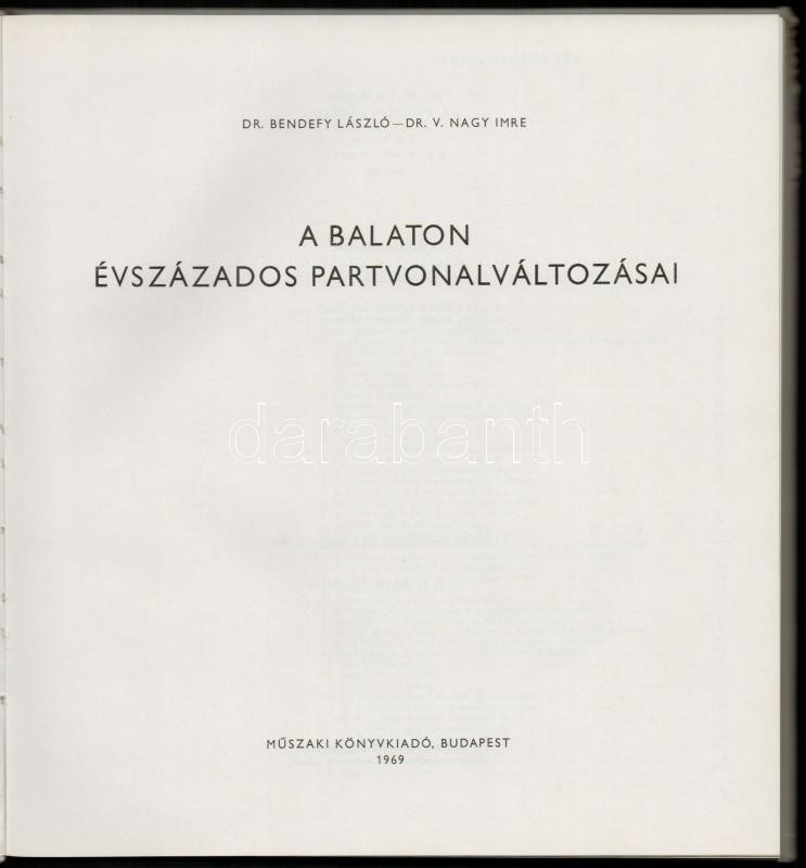 Dr. Bendefy László-Dr. V. Nagy Imre: A Balaton évszázados partvonalváltozásai. Bp., 1969, Műszaki. Számos illusztrációval. Kiadói kartonált papírkötés. Megjelent 1060 példányban.