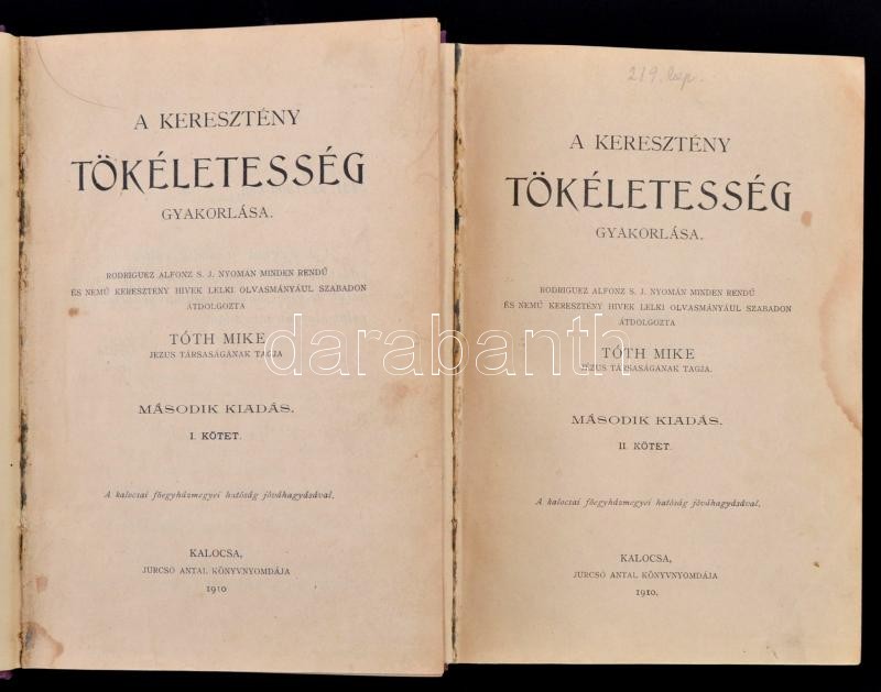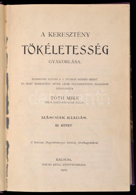 [Rodriguez Alfonz S. J. ]: A keresztény tökéletesség gyakorlása. I-III. kötet. Átdolgozta: Tóth Mika. Kalocsa, 1910, Jurcsó Antal Könyvnyomdája, 639+623+692 p.