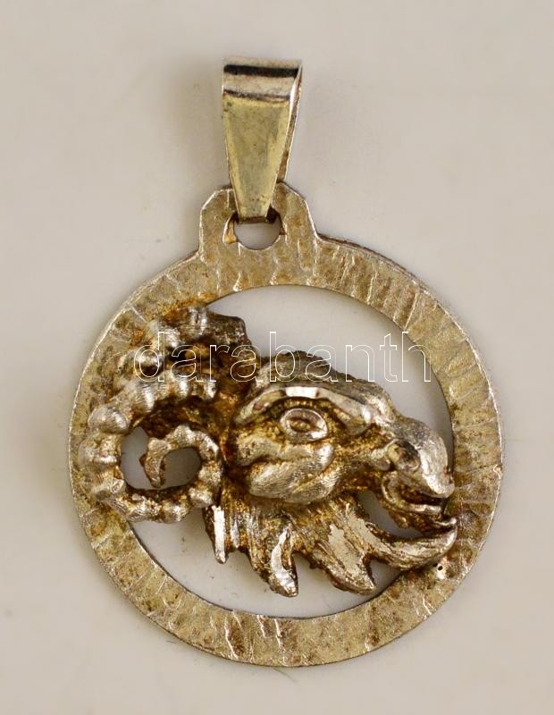 Leírás: Ezüst(Ag) plasztikus kos függő, jelzett, d: 3,4 cm, nettó: 14,4 g