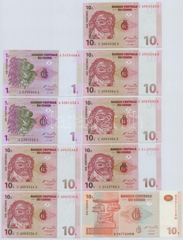 Leírás: Kongó 1997. 1c (2x) + 10c (6x) + 2003. 10Fr T:I