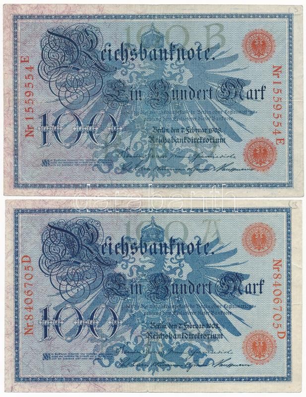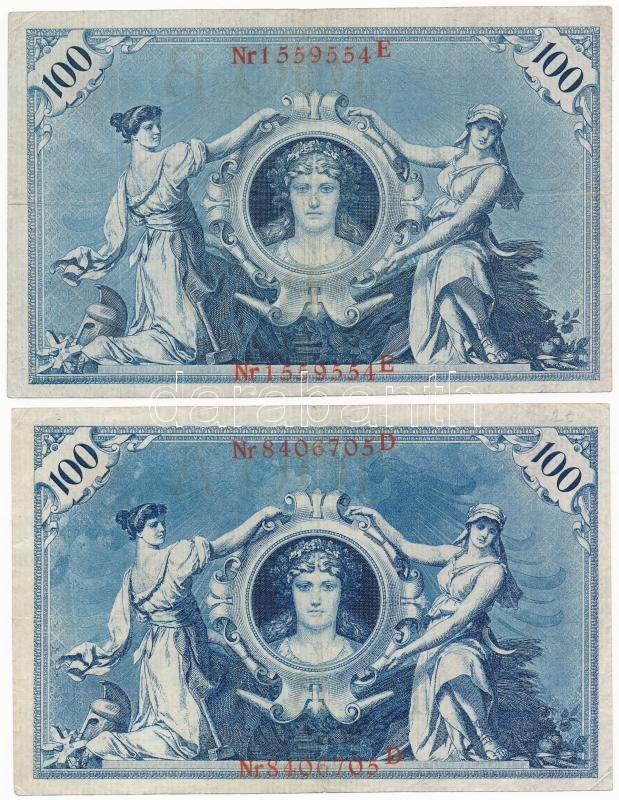 Ge... https://www.darabanth.com/hu/329-Gyorsarveres/329.0/Numizmatika/Kulfoldi-bankjegyek~2500012/Nemet-Birodalom-1908-100M-piros-4x-es-zold-4x-pecset-TII-III-German-Empire-1908-100-Mark~II1837192