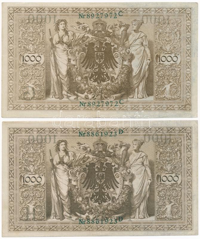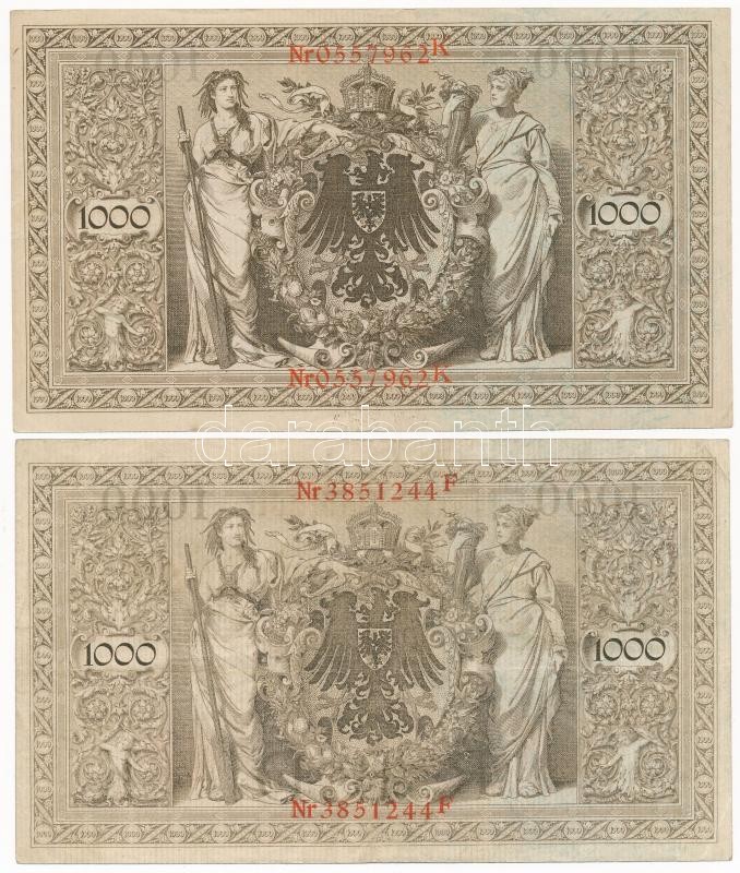 Leírás: Német Birodalom 1910. 1000M piros (4x) és zöld (4x) pecsét T:II-III