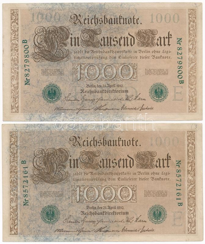 Német Birodalom 1910. 1000M piros (4x) és zöld (4x) pecsét T:II-III