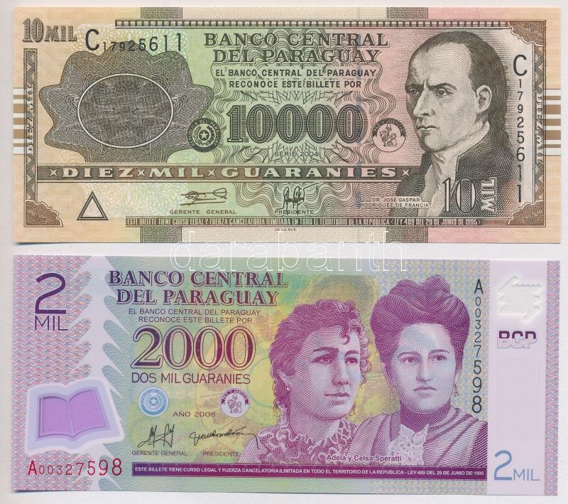 Paraguay 2004. 10.000 Guara... https://www.darabanth.com/hu/329-Gyorsarveres/329.0/Numizmatika/Kulfoldi-bankjegyek~2500012/Paraguay-2004-10000G-plus-2008-2000G-TI--Paraguay-2004-10000-Guaranies-plus-2008-2000-Guaranies-C~II1836802