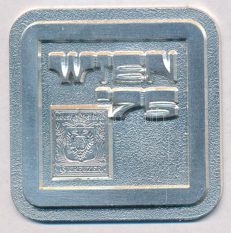 Ausztria 1975. "Bécs '75" bélyegkiállítás ezüstözött fém emlékérme eredeti dísztokban (51x51mm) T:1-