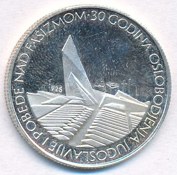 Jugoszlávia ~1975. "Jugoszlávia felszabadítása és fasizmus feletti győzelem 30. évfordulója" jelzett Ag emlékérem (4,95g/0.925/24mm) T:2(P) fo.