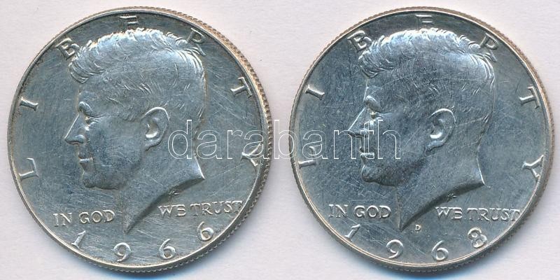 Leírás: Amerikai Egyesült Államok 1966-1968D 1/2$ Ag "Kennedy" (2x) T:2