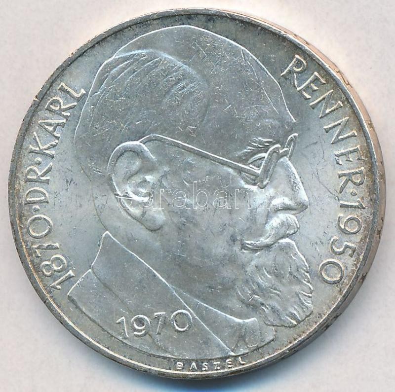 Austria 1959. 50 Schilling Ag "150th Anniversary of the Liberation of Tyrol" + 1970. 50 Schilling Ag "Karl Renner" C:AU,XF
