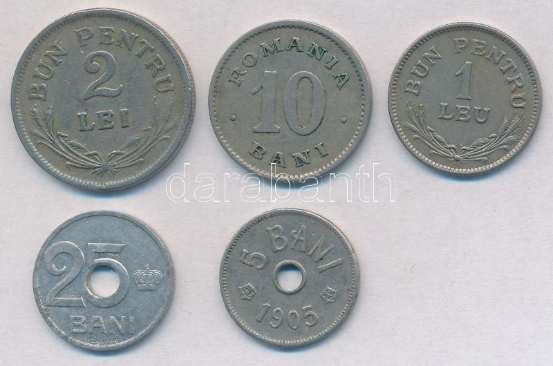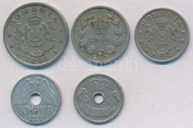 Leírás: Románia 1900. 10b Cu-Ni + 1905. 5b Cu-Ni + 1921. 25b Al + 1924. 1L Cu-Ni + 2L Cu-Ni T:2,2-