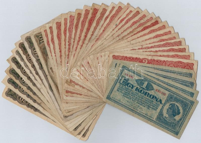 Leírás: 1920. 36db-os korona bankjegy tétel 1-2-10-20K-ás címletek T:III