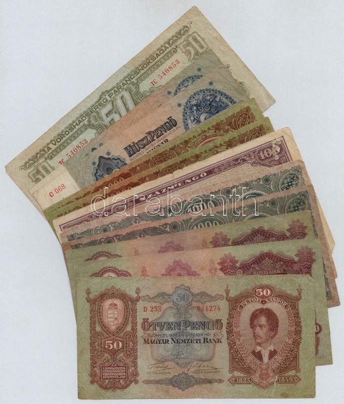 1930-1945. 12db-os vegyes pengő bankjegy, közte 1944. 50P "A Vörö... https://www.darabanth.com/hu/329-Gyorsarveres/329.0/Numizmatika/Magyar-bankjegyek~2500007/1930-1945-12db-os-vegyes-pengo-bankjegy-kozte-1944-50P-A-Voroshadsereg-Parancsnoksaga-TII~II1835483