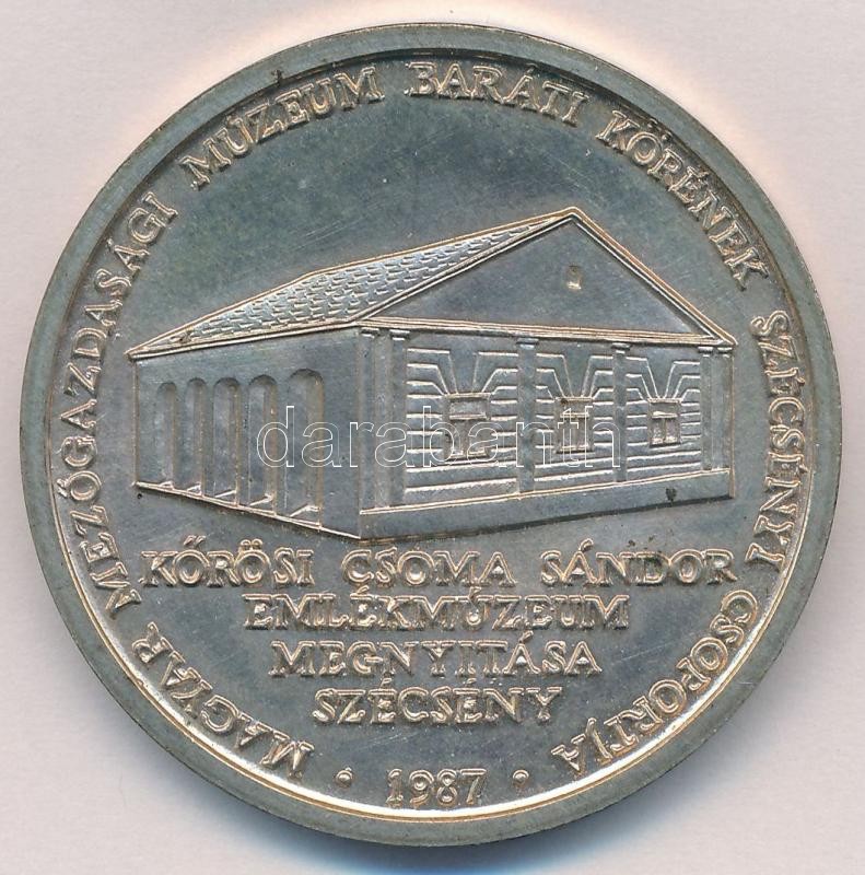Bognár György (1944-) 1987. "Kőrösi Csoma Sándor 1784-1842 / Magyar Mezőgazdasági Múzeum Baráti Körének Szécsényi Csoportja - Kőrösi Csoma Sándor Emlékmúzeum megnyitása Szécsény" fém emlékérem (34,71g/0.840/42,5mm) T:1- patina