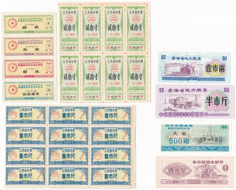 Kína ~1970-1980. 28db rizsjegy, egy része ívben T:II