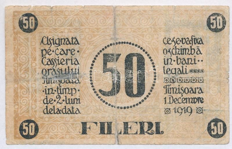 Romania / Timisoara 1919. 50 F... https://www.darabanth.com/hu/329-Gyorsarveres/329.0/Numizmatika/Papir-es-fem-szuksegpenzek~2500006/Romania-Temesvar-1919-50f-TIII-IV-Romania-Timisoara-1919-50-Fileri-CVG-G~II1834992