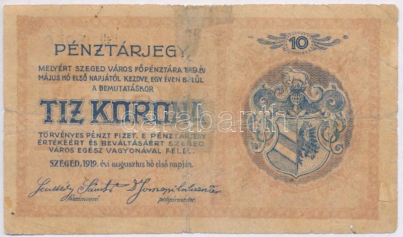 Leírás: Szeged 1919.08.01. 10K "Városi Pénztárjegy" T:IV ragasztás