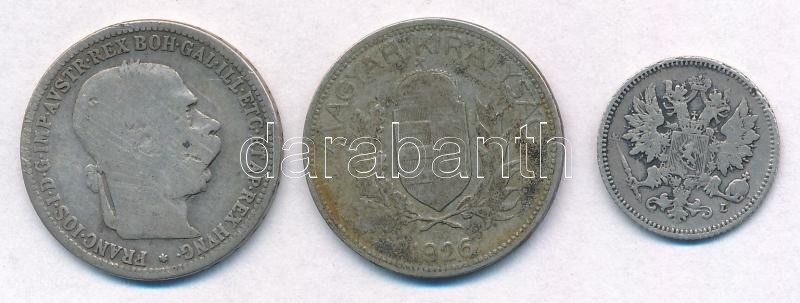 3db-os vegyes magyar és külföldi rossz tartású, sérült ezüstpénz tétel, közte Finnország 1894L 25p Ag T:3