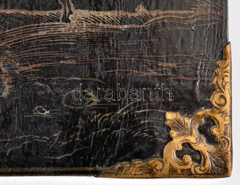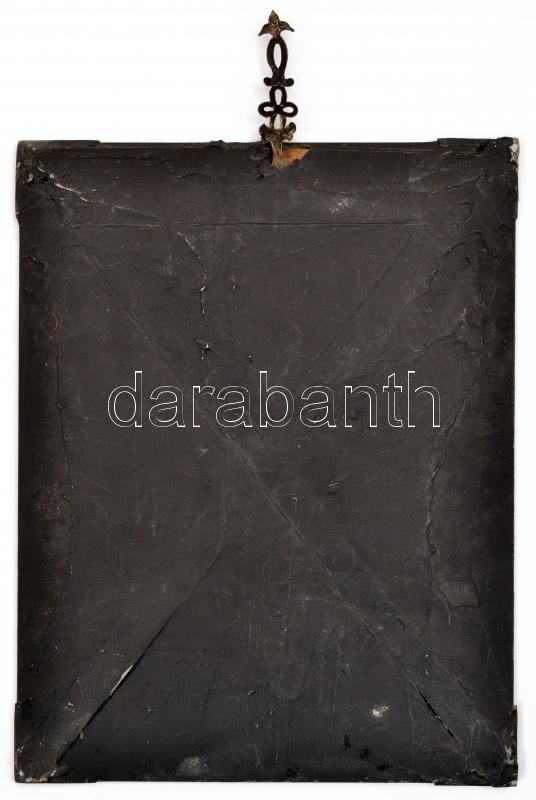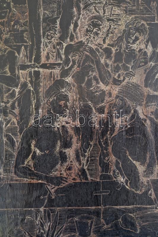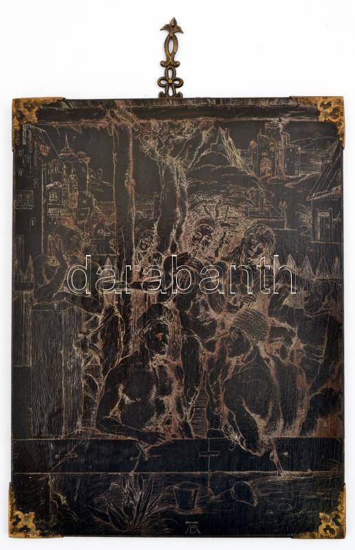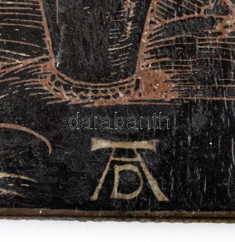 Albrecht Dürer: Férfifürdő c. fametszetének későbbi réz nyomólemeze. Díszes rézveretű sarkokkal, akasztóval. / Copper plate of Albrecht Dürer's Men's bath xilography. 19x25 cm
