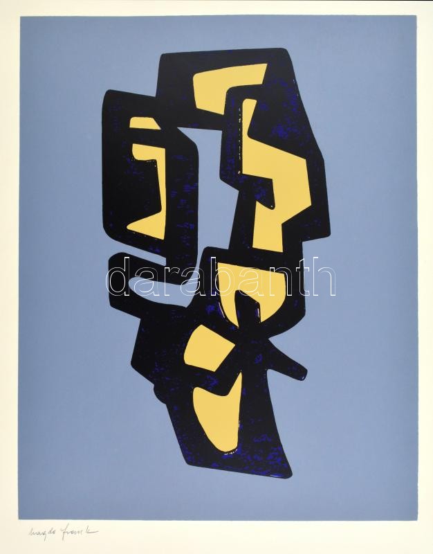 Frank Magda (1914-1997): Szoborterv. Szitanyomat, papír, jelzett. 38,5×30 cm / Magda Frank (1914-1997): Design of a statue. Screenprint on paper, signed, 38,5×30 cm. Magda Frank was born in Kolozsvár/Cluj, Transylvania and studied in Budapest. In 1948 she moved to Paris, later she also lived in Buenos Aires.