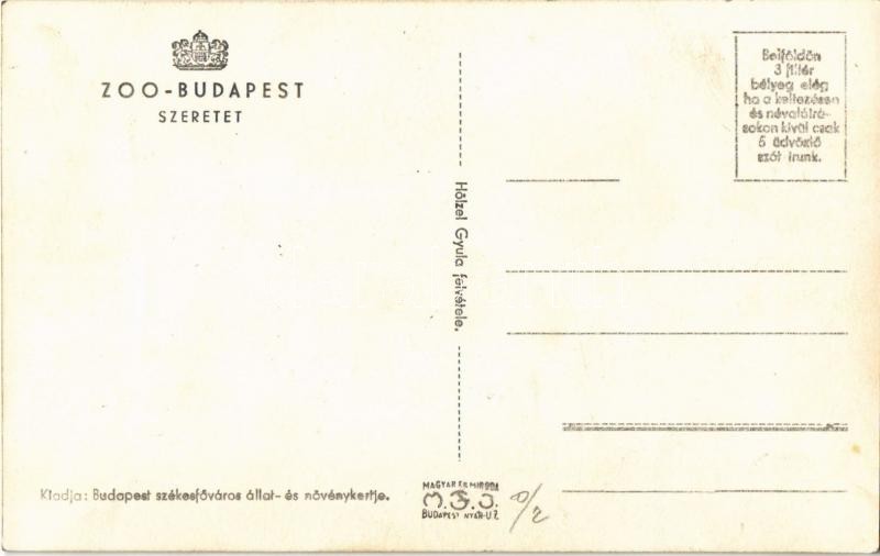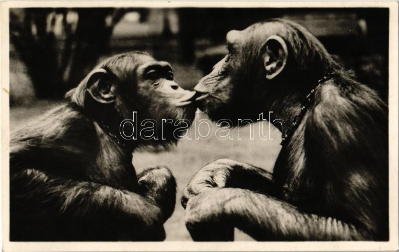 Szeretet. Csimpánzok puszilkodnak a budapesti állatkertben. Hölzel Gyula felvétele, kiadja Budapest székesfőváros állat- és növénykertje / chimpanzees kissing each other