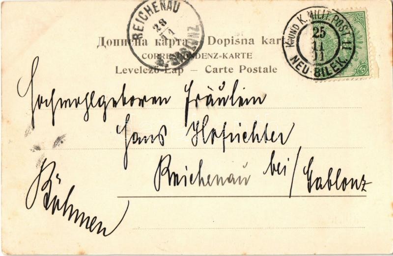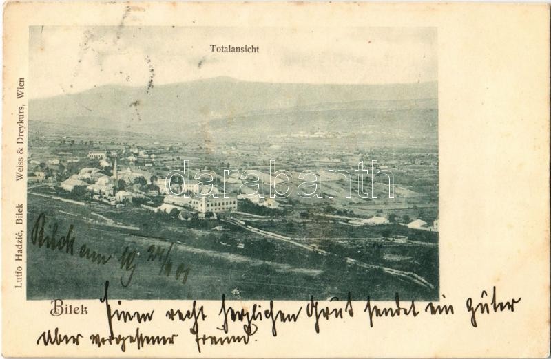 Leírás: 1901 Bilek. Lutfo Hadzic + "K. UND K. MILIT. POST 11 NEU BILEK"