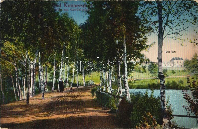 Leírás: 1917 Lázne Kundratice, Bad Kunnersdorf (Osecná, Olschwitz); Partie am Gondelteich / lake, Hotel Seidl