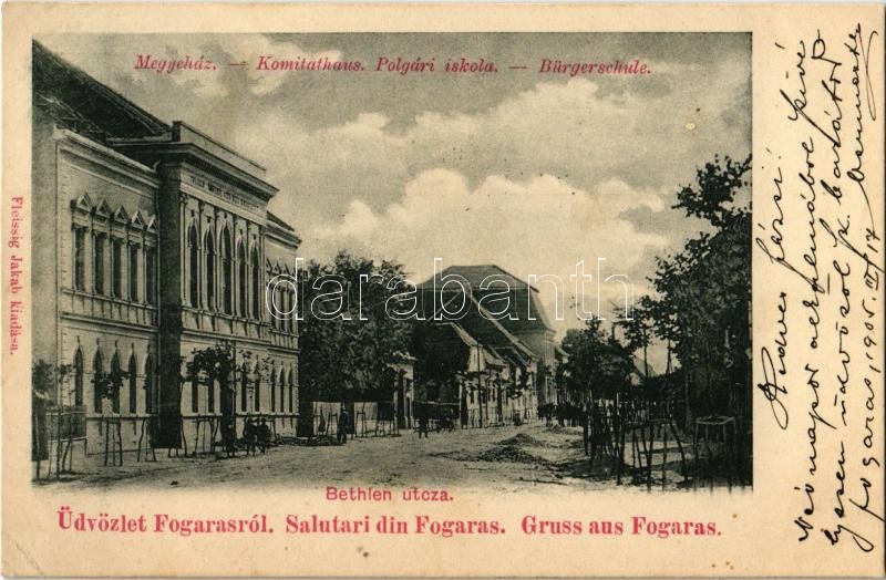 1905 Fogaras, Fagaras; megyeház, polgári iskola. Fleissig Jakab kiadás... https://www.darabanth.com/hu/33-Nagyaukcio/33.1/Kepeslapok/Erdely~13901/1905-Fogaras-Fagaras-megyehaz-polgari-iskola-Fleissig-Jakab-kiadasa-county-hall-school-EK~II2132279