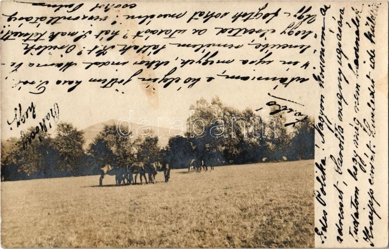 1906 Zsibó, Jibou; ménes, lovak legelés közben / horses grazing. photo https://www.darabanth.com/hu/33-Nagyaukcio/33.1/Kepeslapok/Erdely~13901/1906-Zsibo-Jibou-menes-lovak-legeles-kozben-horses-grazing-photo~II2142323