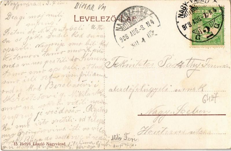 Leírás: 1908 Nagyvárad, Oradea; vasútállomás, villamos / railway station, tram