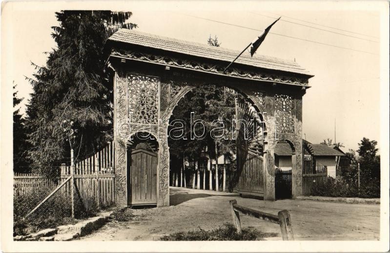 Leírás: Kolozsvár, Cluj; Székely kapu a m. kir. gazdasági akadémia udvarán / Transylvanian wood carved gate