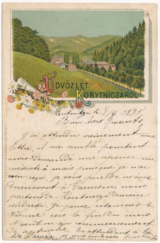 1895 (Vorläufer) Koritnyica, Korytnica; Handowski, Steiner & Frank... https://www.darabanth.com/hu/33-Nagyaukcio/33.1/Kepeslapok/Felvidek~13903/1895-Vorlaufer-Koritnyica-Korytnica-Handowski-Steiner-Frank-No-907-Art-Nouveau-floral-li~II2140962