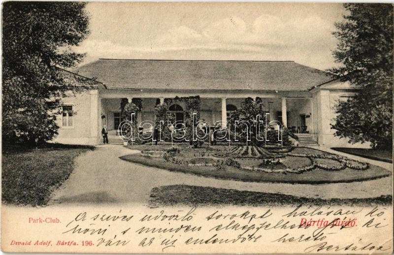 1900 Bártfa-fürdő, Bardejovské Kúpele, Bardiov, Bardejov; Park-Club. D... https://www.darabanth.com/hu/33-Nagyaukcio/33.1/Kepeslapok/Felvidek~13903/1900-Bartfa-furdo-Bardejovske-Kupele-Bardiov-Bardejov-Park-Club-Divald-Adolf-196-EK~II2140809