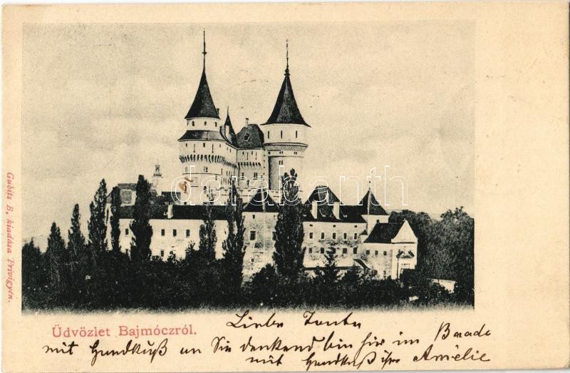 Leírás: 1903 Bajmóc, Bojnice; Gróf Pálffy kastély. Gubits B. kiadása / Bojnicky hrad (zámok) / castle