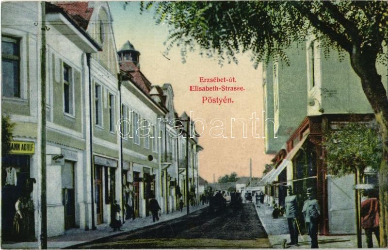 1910 Pöstyén, Piestany; Erzsébet út, Reiszmann Adolf. Meteor fényirda ... https://www.darabanth.com/hu/33-Nagyaukcio/33.1/Kepeslapok/Felvidek~13903/1910-Postyen-Piestany-Erzsebet-ut-Reiszmann-Adolf-Meteor-fenyirda-kiadasa-street-shop~II2141437
