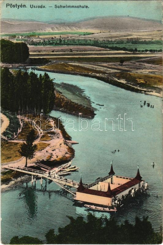 Leírás: 1912 Pöstyén, Piestany; uszoda. Kohn Bernát kiadása / Schwimmschule / swimming pool