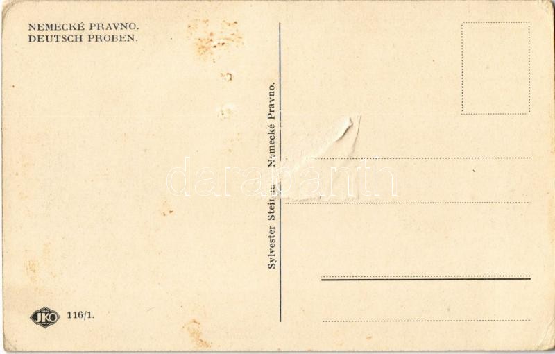 Leírás: Németpróna, Nemecké Právno, Nitrianske Pravno; Római katolikus népiskola, templom, üzlet. Sylvester Stein. kiadása / school, church, shop (Rb)