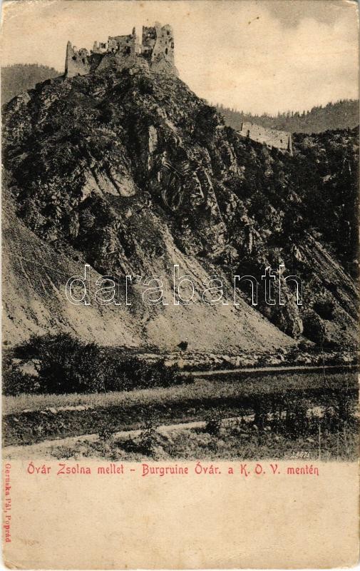 Óváralja, Nezbudská Lúcka, Óvár, Stary Hrad; vár a Vágvölgyben Zsolna mellett a Kassa-Oderbergi Vasút mentén. Kiadja Geruska Pál / castle ruins in Povazie, near Zilina, Kosice-Bohumín railway (EK)
