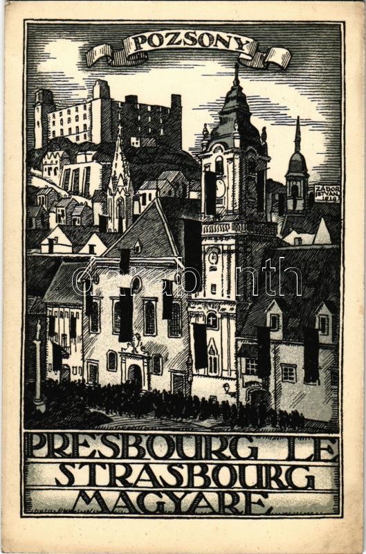 Pozsony, Pressburg, Bratislava; A magyar Strassbourg! Itt sohse laktak csehek! Impr. Grafikai Intézet Rt. Cseh-ellenes propaganda lap / The Hungarian Strassbourg! Czechs have never lived here! Hungarian Anti-Czech irredenta propaganda card s: Zádor István