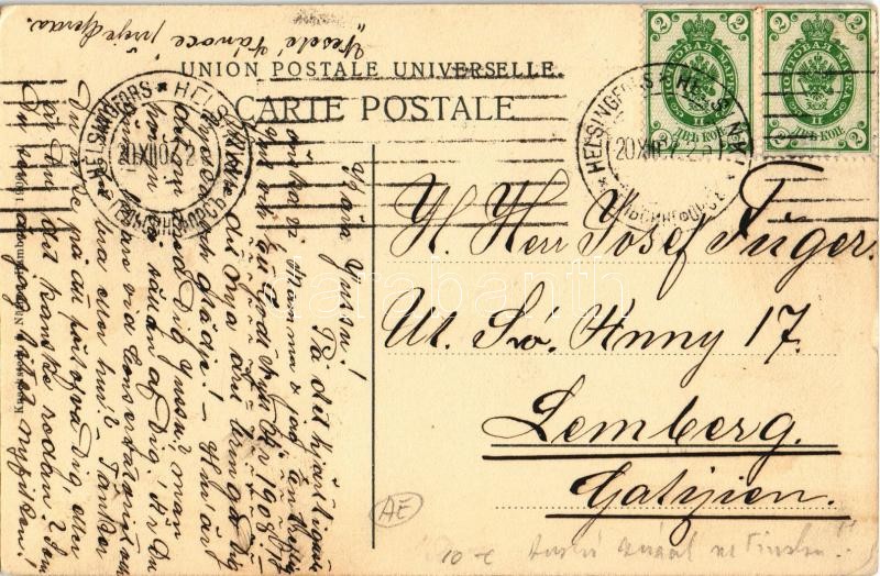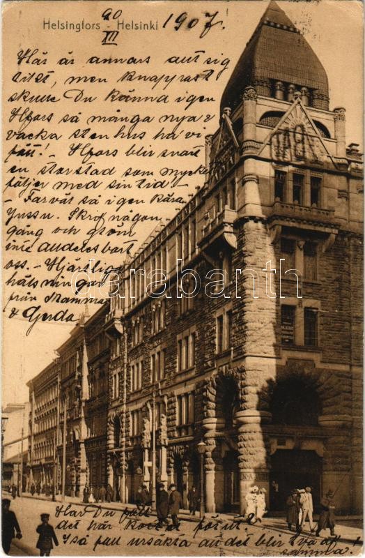 1907 Helsinki, Helsingfors; https://www.darabanth.com/hu/33-Nagyaukcio/33.1/Kepeslapok/Finnorszag~13930/1907-Helsinki-Helsingfors-~II2141889