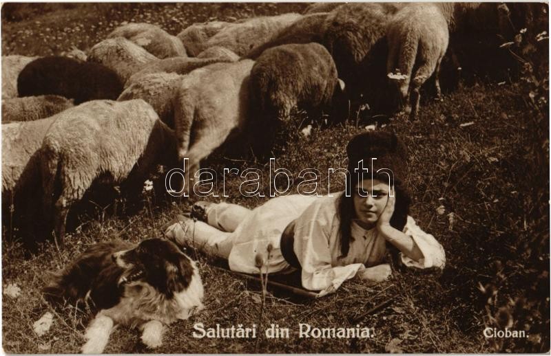 Salutari din Romania, Cioban / Romanian folklore, shepherd https://www.darabanth.com/hu/33-Nagyaukcio/33.1/Kepeslapok/Folklor~13979/Salutari-din-Romania-Cioban-Romanian-folklore-shepherd~II2139479